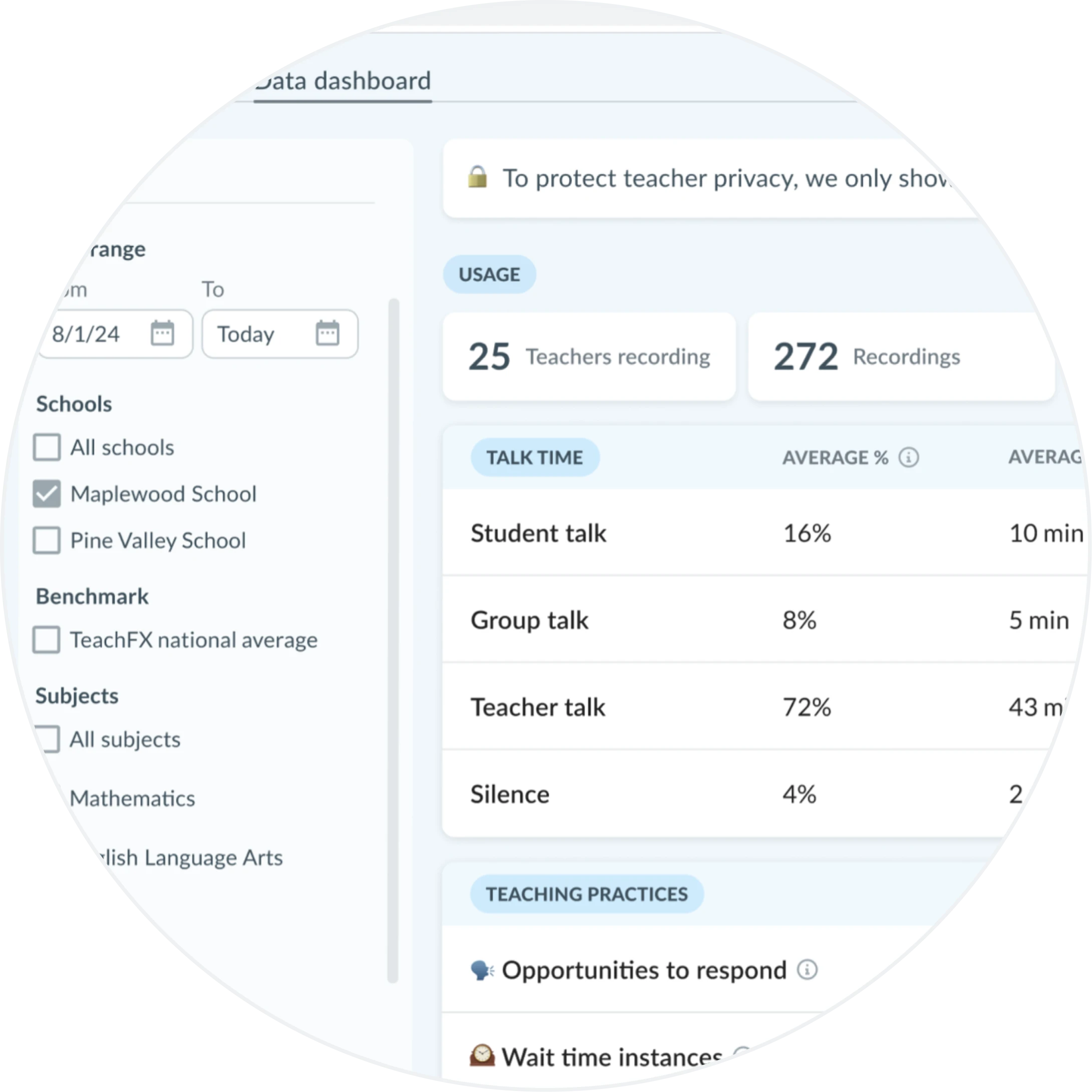 Aggregate, anonymized data enables instructional leaders to better understand teaching and learning dynamics at scale