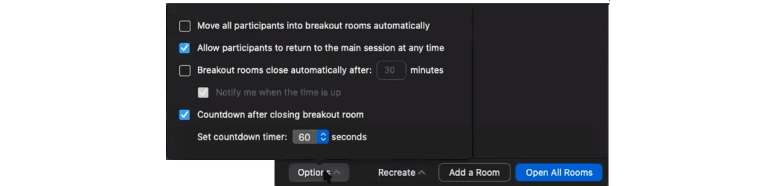 ✅ Pro-tip: Before opening breakout rooms, I recommend enabling “Move all participants into breakout rooms automatically” to make transitions into breakout rooms smoother. This is especially helpful if you’re teaching young kids.