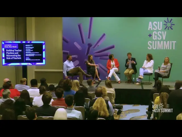 TeachFX CEO Jamie Poskin joins education leaders for a panel at ASU+GSV 2023 exploring building teacher pipelines and reinventing the role of teachers.