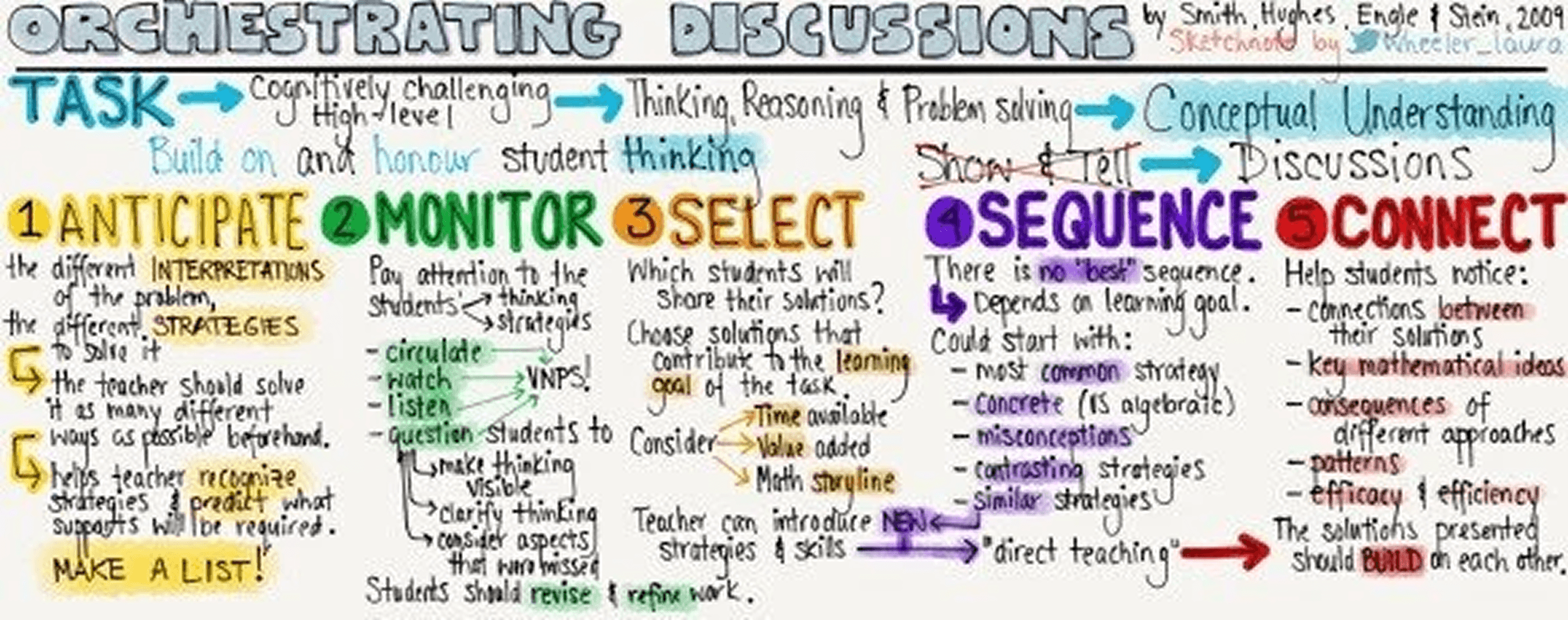 The most powerful framework I’ve found for replicating the Japanese classroom is the 5 Practices for Orchestrating Productive Mathematical Discussions. This framework that Margaret Smith and Mary Kay Stein developed breaks down the launch and synthesis of any math activity into five components: