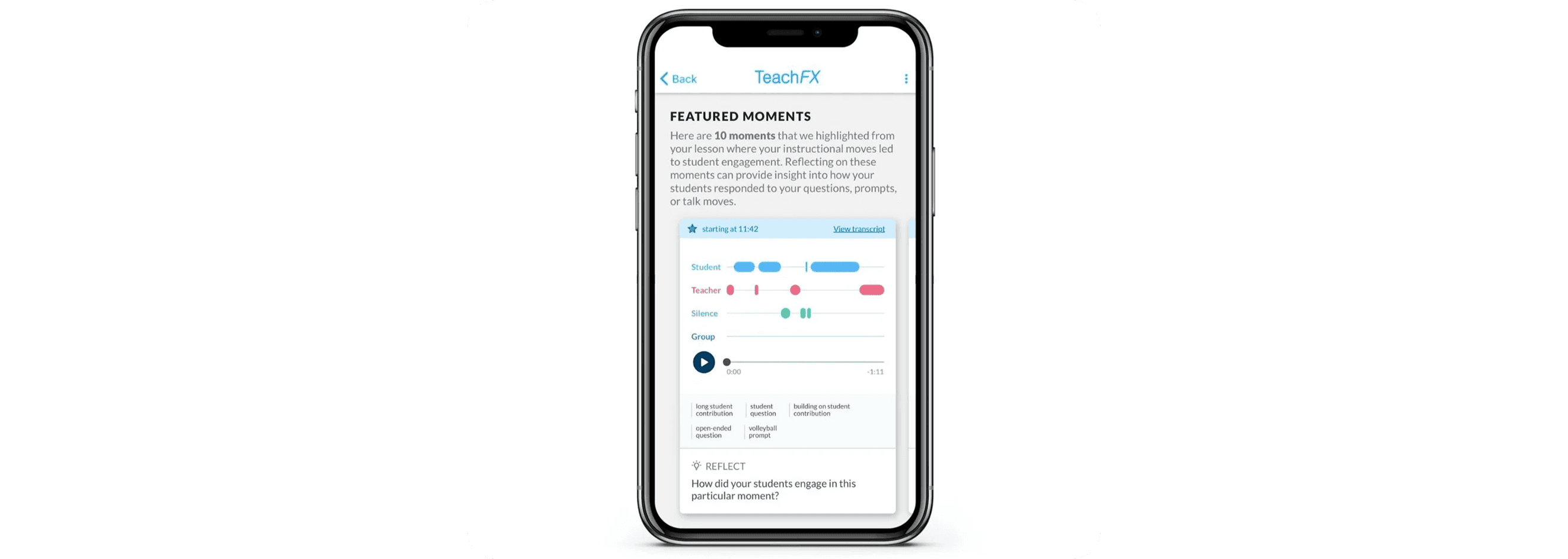 Featured Moments helps bring practicality to the daily reflection. With Featured Moments, you can build on those key moments that got your students talking and create pathways to making highly engaging conversations commonplace in your lessons. The best part? It takes just minutes. This targeted approach encourages teachers to engage in meaningful and low-lift reflection that benefits their students in the long-run.