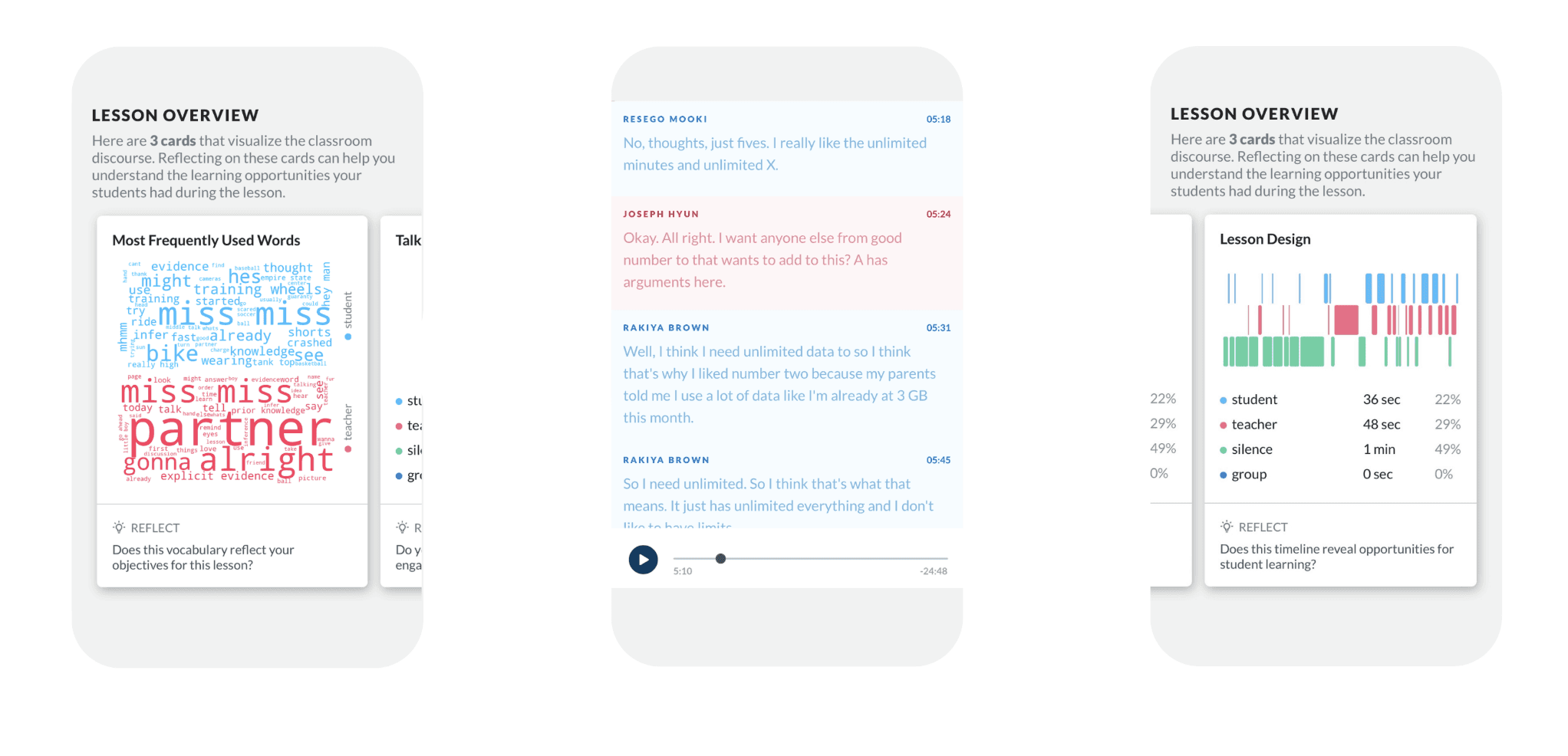 We’re here to build teachers' capacity, and we make sure they know that this is not a kind of “gotcha” tool. The admin can't see into teachers’ class reports unless they choose to share them. They can delete a class report whenever they want. We built this app to create a safe space for teachers to reflect on their own practice; we assure them that this really is their data, and it's for them to use it for their own development and reflection.