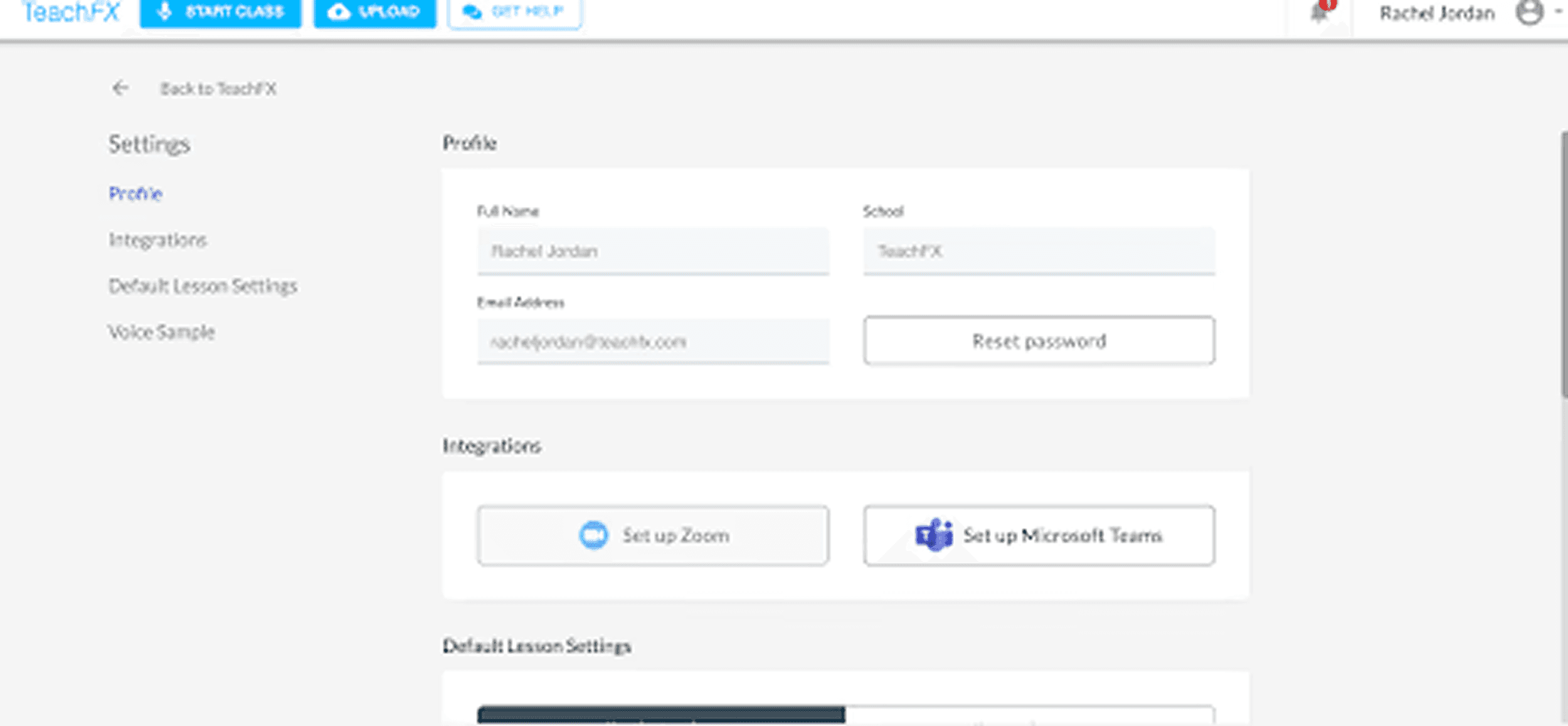 Now, each teacher can log into their TeachFX account and turn on their TeachFX-Zoom integration.