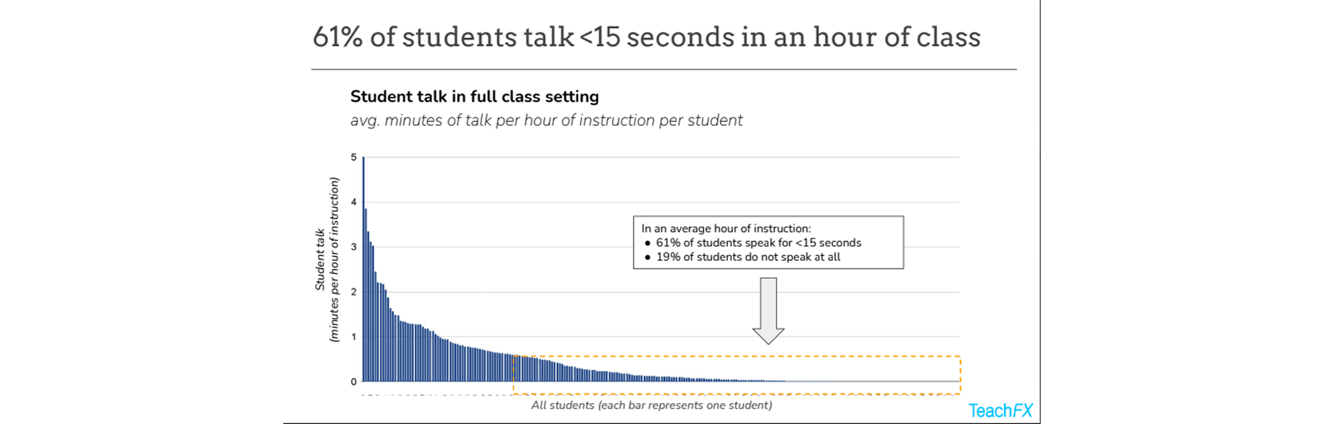 At one school, 61% of students talked <15 seconds in an hour of class% of students talk <15 seconds in an hour of class