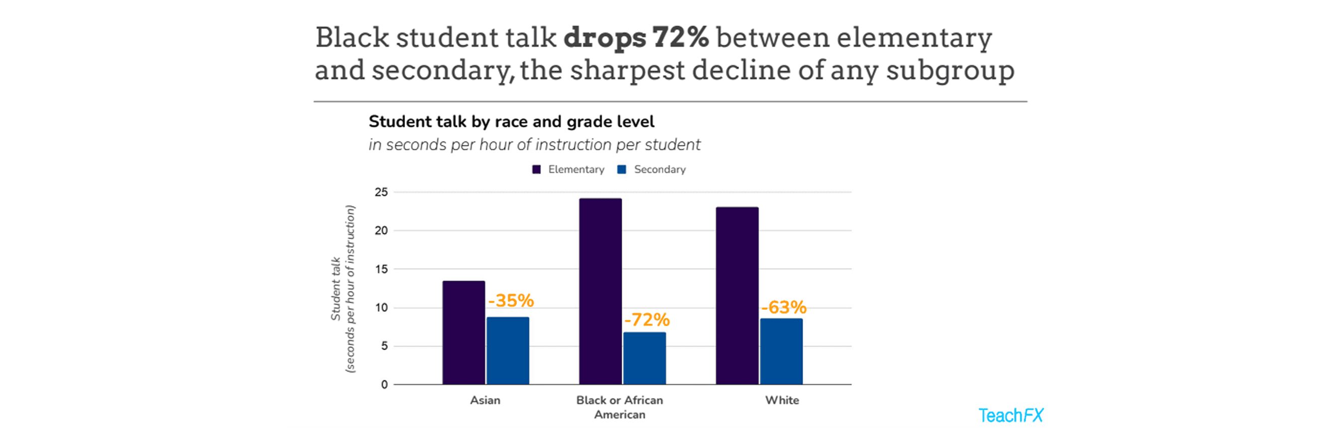 Black student talk drops 72% between elementary and secondary, the sharpest decline of any subgroup