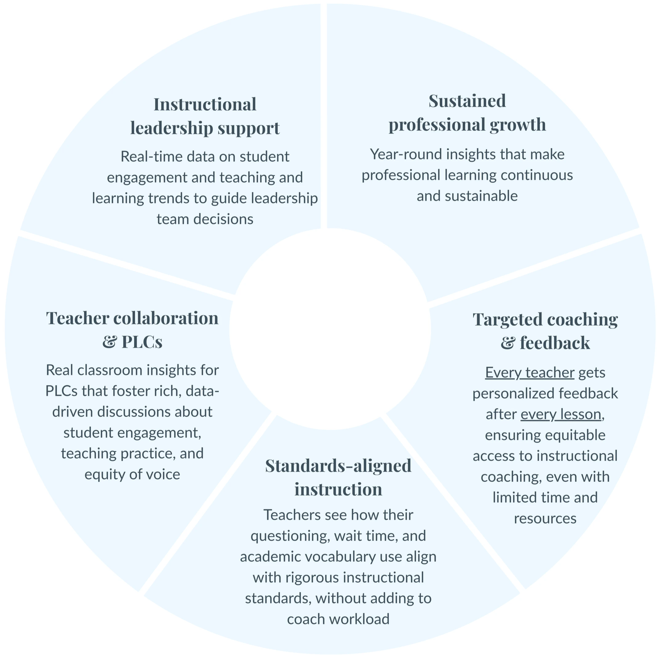 Scalable support: Every teacher can receive coaching-quality insights and feedback after every class.