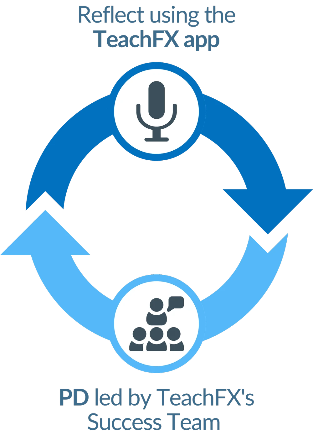 TeachFX partners at the school and district-level to support teachers with AI-powered instructional coaching and inquiry-based professional development.